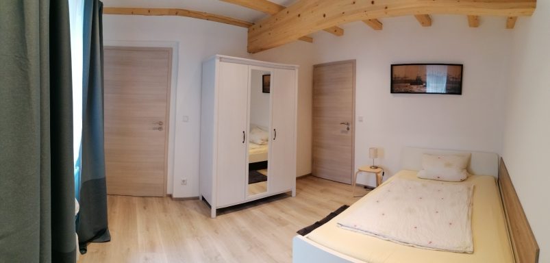 Schlafzimmer 4: im 1. OG mit Queensizebett (140 x 200 cm) ebenfalls für Ferienwohnung 2 buchbar.
